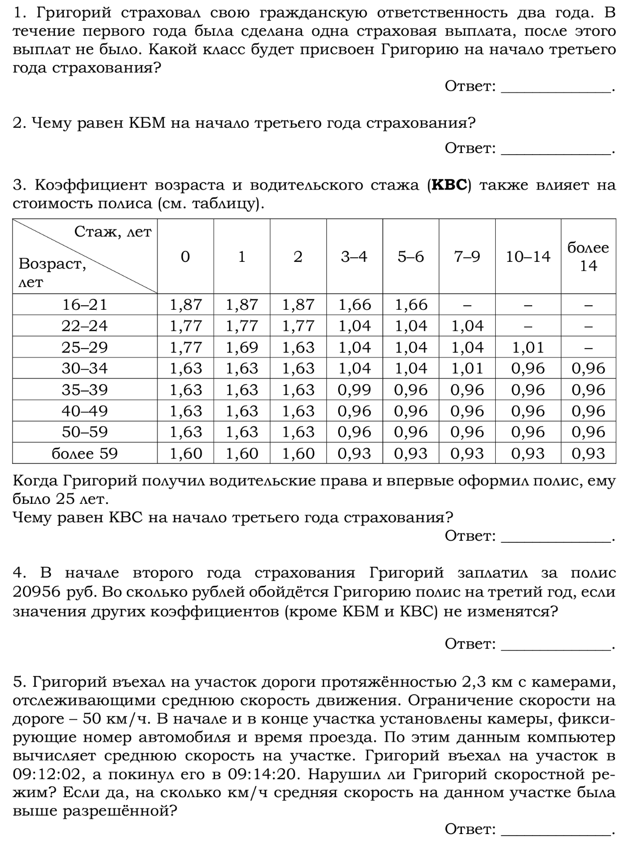 После ученику необходимо самостоятельно решить подобный вариант из 5 заданий.